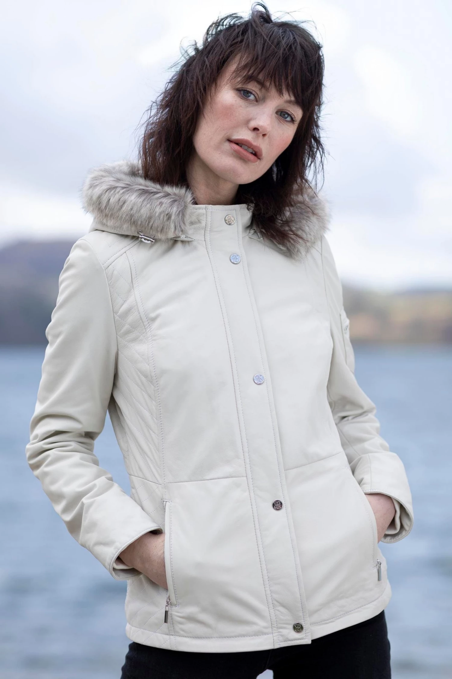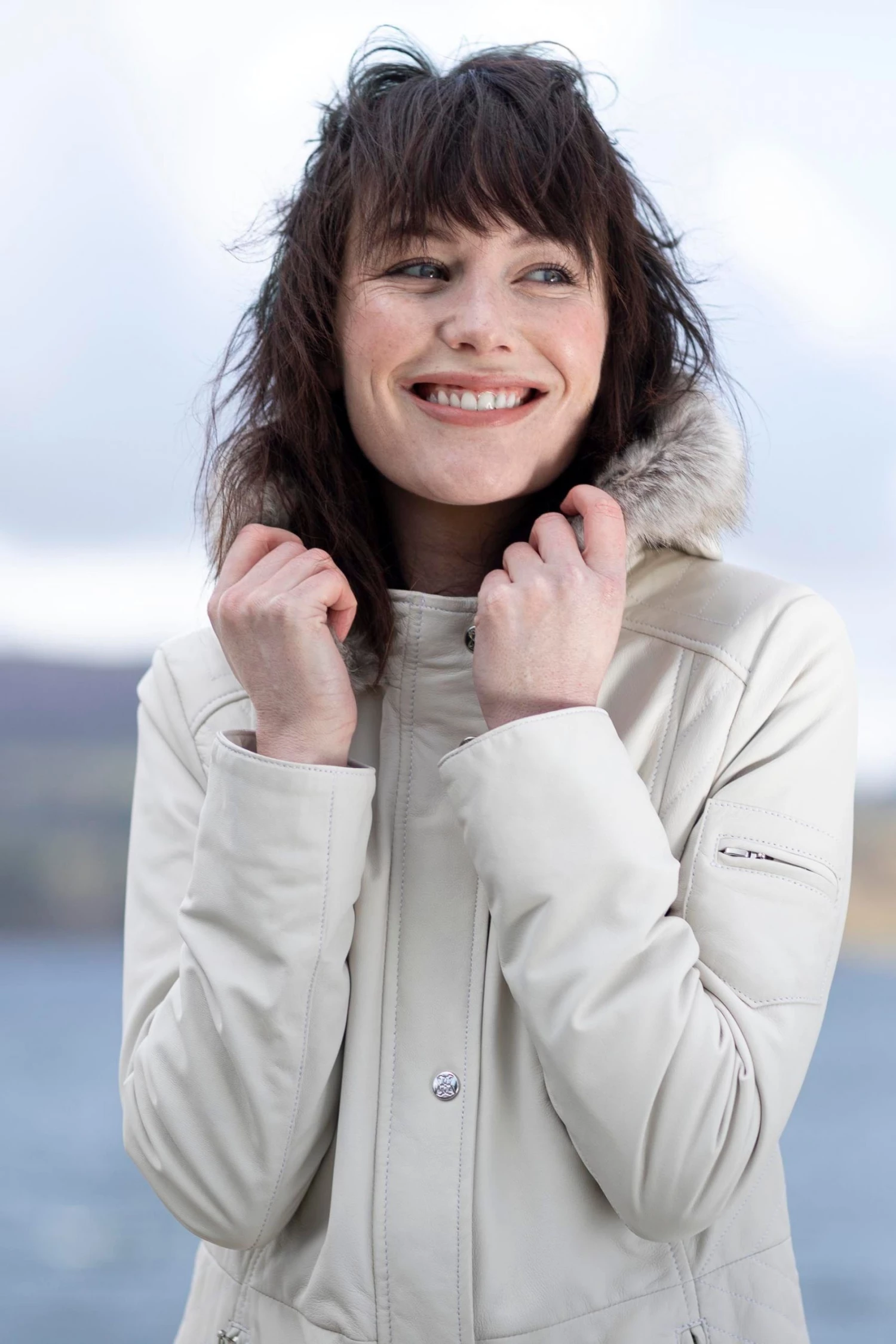 The Armathwaite is a perfect addition to all winter wardrobes to take you through the winter months. This coat exudes luxurious style with stitch detailing, a faux fur trimmed hood and silver metal hardware not to mention the gorgeous white colour of the Aniline leather. So much to love, and we’ve not even mentioned how amazing the leather feels!