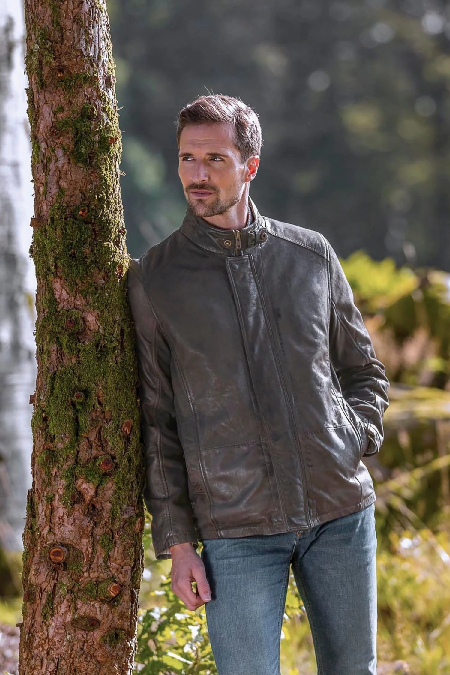 This classically-styled leather coat in dark brown is a modern update to one of our traditional styles. With a slightly longer length than many leather jackets, the Benjamin leather coat is a great coat to wear anytime of the year. Hand-crafted from a rugged nubuck leather, giving a suede-like appearance which is soft-to-touch and even better to wear.