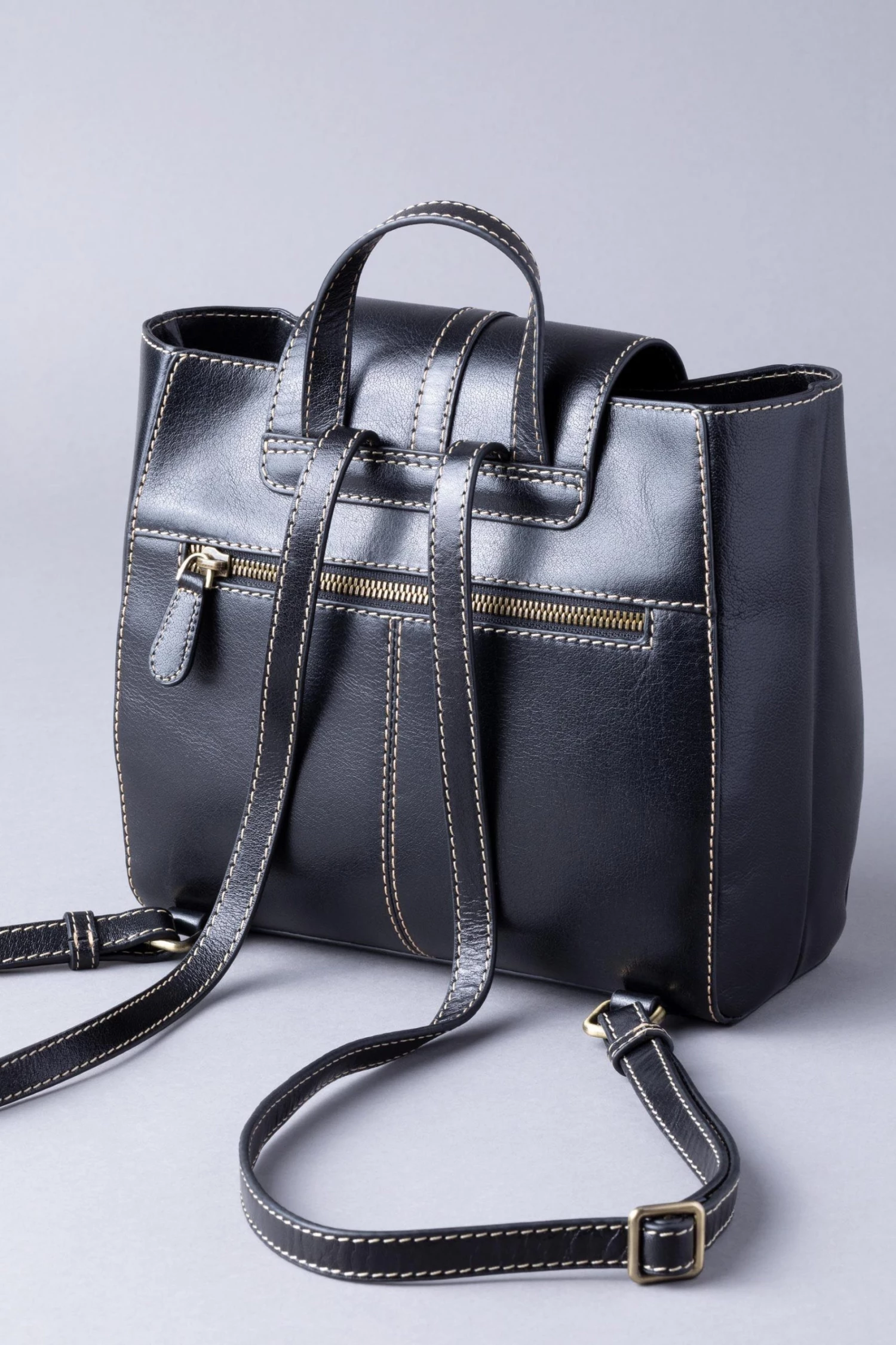 The Birthwaite leather backpack has been engineered in a beautiful, rich sturdy leather. In classic black, this structured backpack combines practicality with a classic aesthetic. A large satin lined interior is secured with branded tonal hardware, and press-stud flap. Adjustable straps and a top-handle mean this rucksack is a versatile style for on the move.