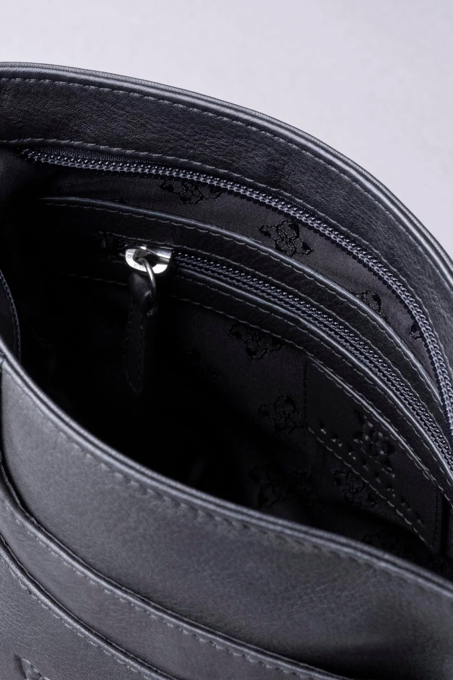Keep your essentials organised with the Allerdale leather cross-body bag in black. Infused with style and practicality, the Allerdale handbag range is crafted from premium leather. Complete with a tassel detail, central zip compartment, two front slip pockets and an external zip pocket on the reverse, this cross-body bag is definitely not short on detail. The adjustable shoulder strap makes the Allerdale ideal for everyday use, big enough for your essentials, but not too heavy. Exclusive to Lakeland Leather.