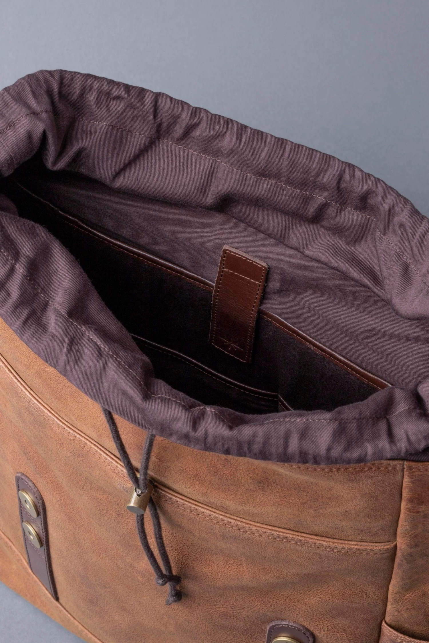 The Hawksdale Leather Backpack is the ideal rugged accessory for all your on-the-go needs. Expertly crafted from the finest leather with a supple and sturdy touch, the spacious main compartment of this backpack features a padded sleeve to fit up to a 15 inch laptop, as well as one zip and two slip pockets, perfect for storing your smaller items. An adjustable drawstring at the top of the bag gives that extra bit of security. Go hands-free with the adjustable shoulder straps or use the grab hoop to hold the backpack at your side.