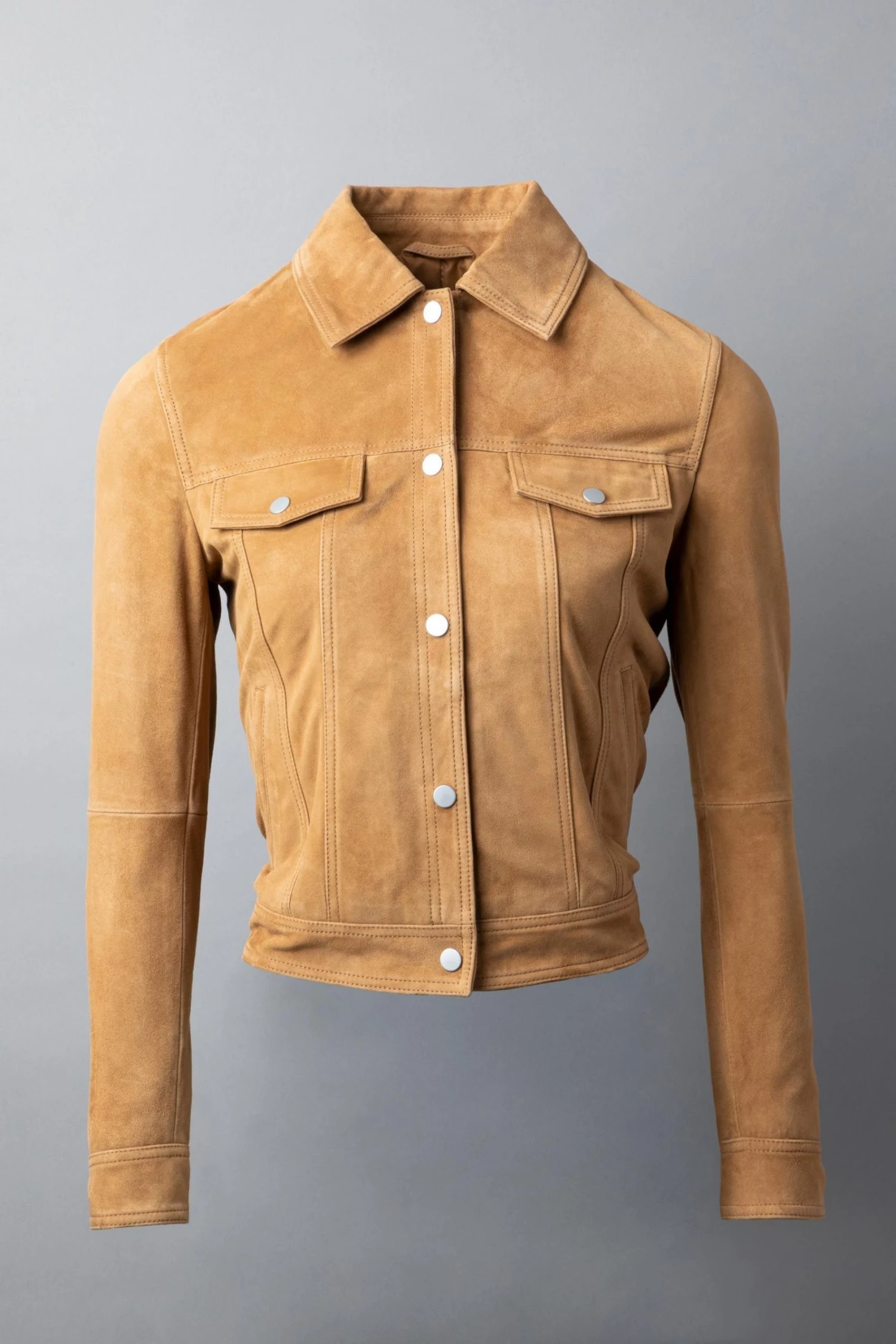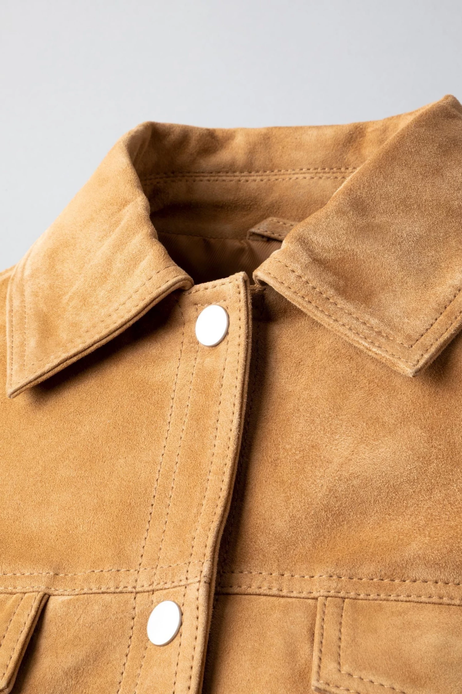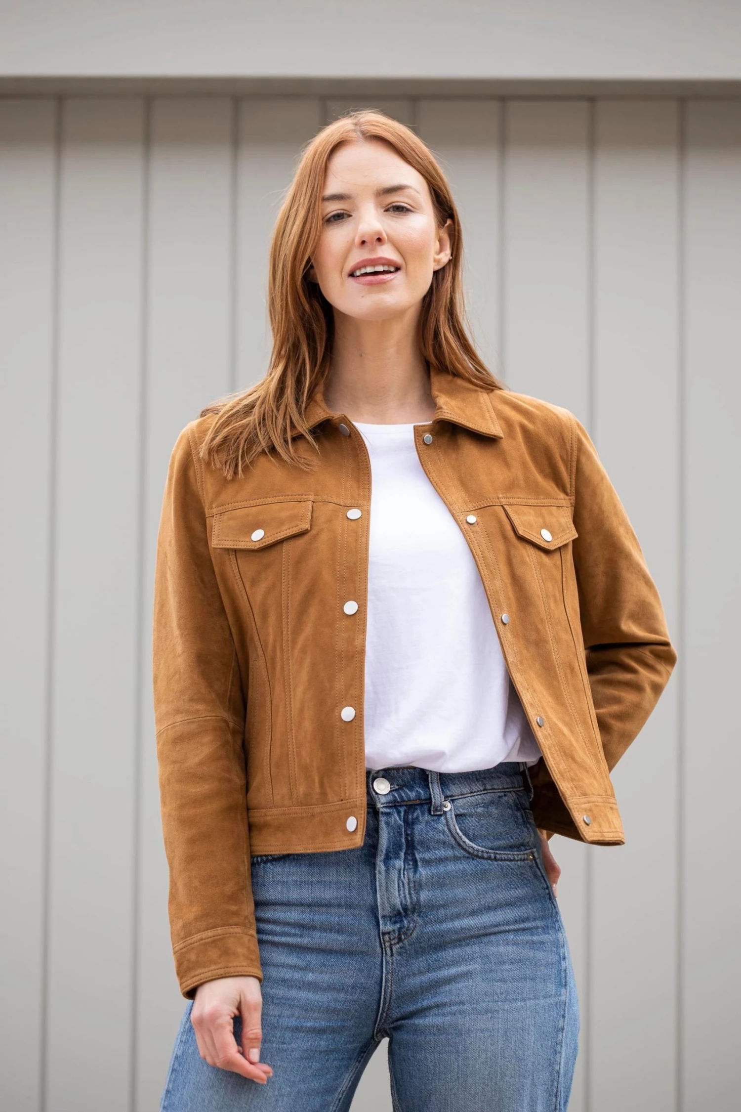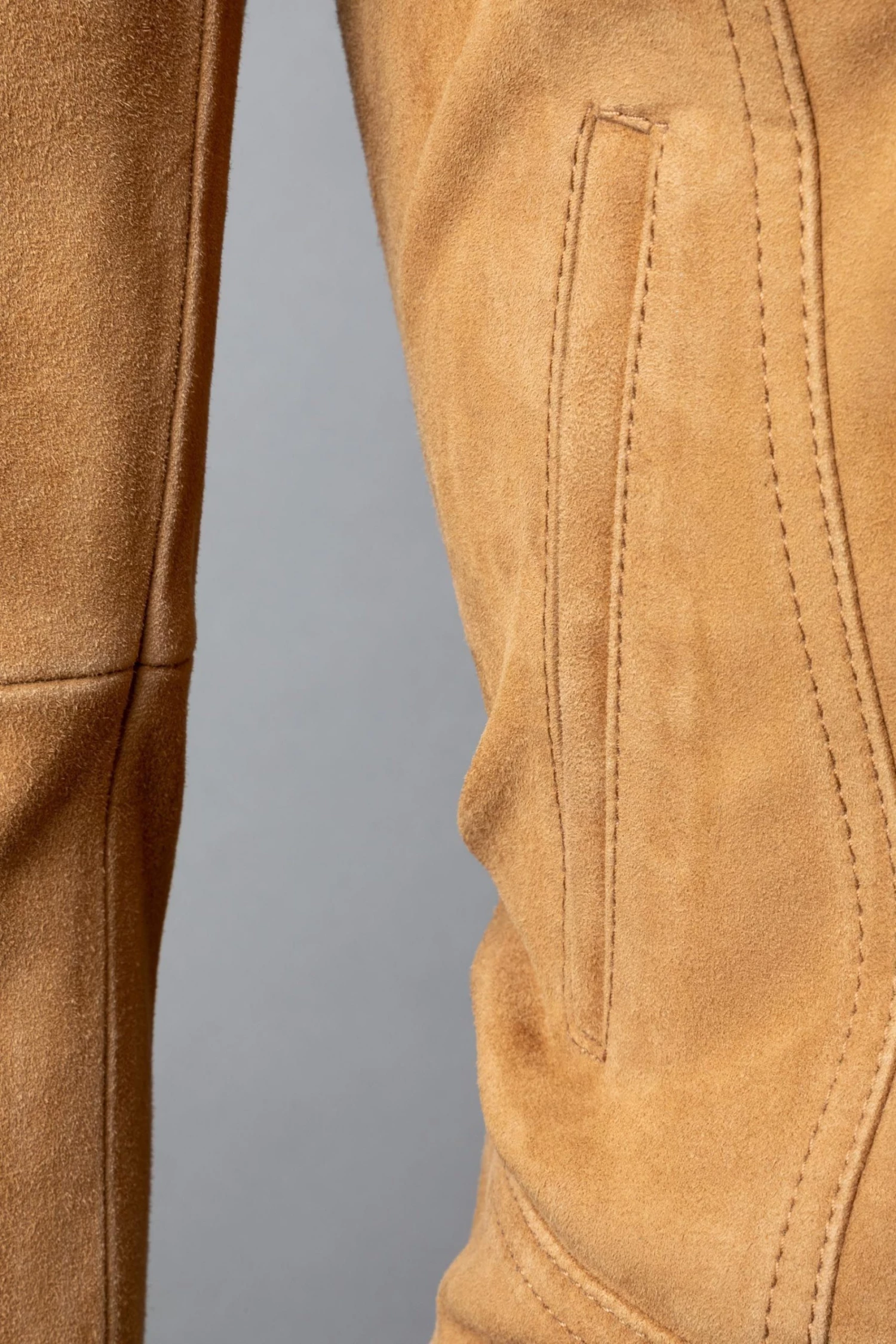 The stunning Hazelwood suede jacket in tan is a stylish and understated staple to add to your wardrobe. Crafted in premium quality suede leather and featuring clean metal hardware, this lightweight jacket will pair well with so many outfits. Complete with centre press stud fastening, chest pockets with press stud fastening and two lower slip pockets brings warmth and practicality into the fold. This is a tight fitting style so they recommend you size up.