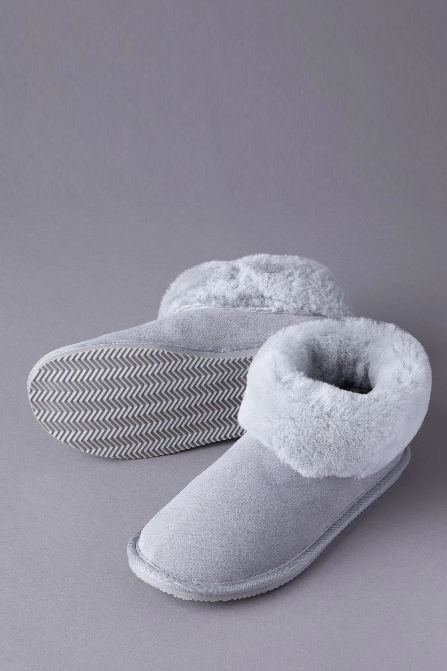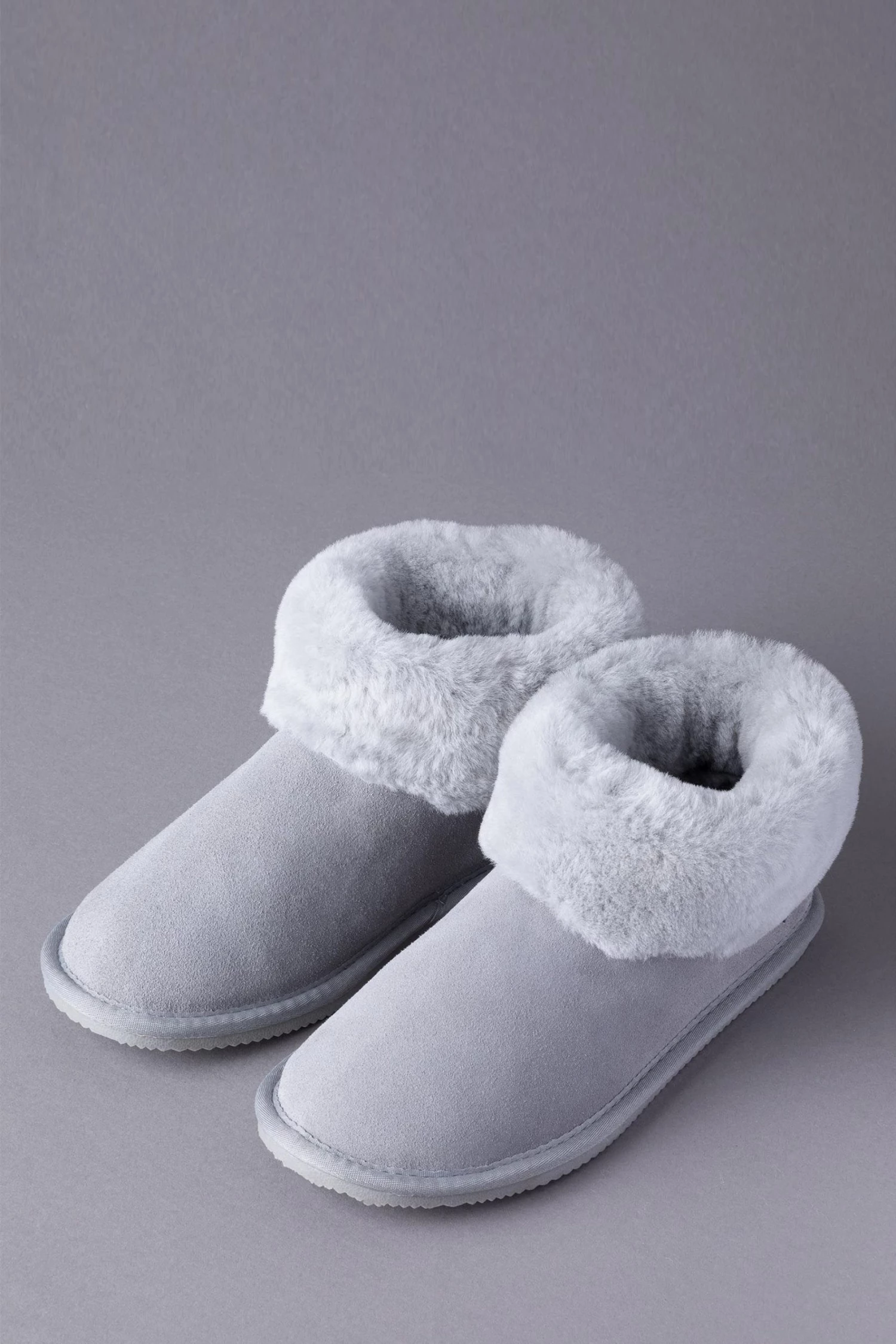 Lakeland Leather’s ladies slipper booties are made using pure, luxurious sheepskin, meaning that they offer the ultimate in both comfort and warmth. Designed in a boot style with full, thick cosy sheepskin that rises above the ankle, each slipper boot has a rounded sheepskin cuff to ensure added warmth. The lightweight, yet durable sole is built to withstand indoor (and occasional outdoor) wear and tear. The natural fluffiness of the sheepskin will make your slippers feel slightly small at first but this will soon mould comfortably to your foot. If the length feels fine, you have the right size. If you can feel your toe is touching the front of the slipper, it is too small, you’ll need to size up. They recommend you size up if you are between sizes. Upper: 100% Sheepskin. Sole: Textured rubber sole. Cushioned air-pocket insole. Complete with premium branded box.