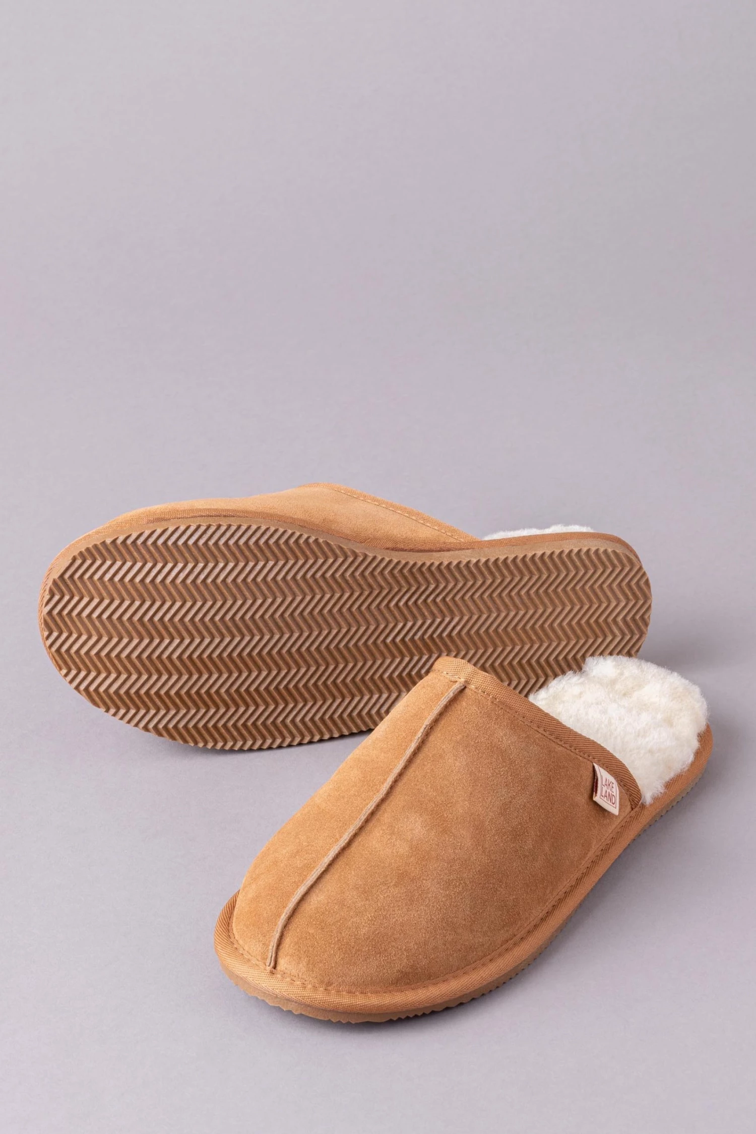 Keep comfort levels at the top of your agenda with these classic sheepskin sliders from Lakeland Leather. The sheepskin lining is guaranteed to keep your feet toasty warm, whilst the cushioned sole is designed to provide added comfort. The backless style of Lakeland’s men’s sheepskin mules enables them to be slipped on and off with ease, and the durable outsole can be subjected to occasional outdoor use (if you really have to go outside!). The natural bounce of the sheepskin may make your slippers feel slightly small at first but the wool will soon mould comfortably to your foot. If the length feels fine, you have the right size. If you can feel your toe is touching the front of the slipper, it is too small, you’ll need to size up. They recommend you size up if you are between sizes. Upper: 100% Sheepskin. Sole: Textured rubber sole. Cushioned air-pocket insole. Complete with premium branded box.