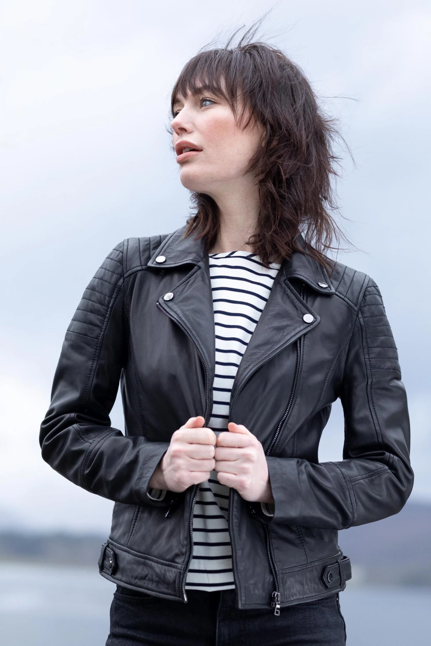 The leather biker jacket, or more specifically, the black leather biker jacket; we all consider it a wardrobe staple, but that doesn’t mean you should settle for anything but the best. And this is where the Millie delivers. Super soft aniline leather is paired with a muted, tonal, asymmetrical zip, and classic biker lapels. Shoulder stitch work, side buckles and zipped cuffs offer extra details, all brought together perfectly with long, contoured panels to provide a flattering fit. The black leather biker is a classic, a design here to stay. If you want the voice of an expert, we suggest you choose a jacket crafted from the finest leather, which will age gracefully.