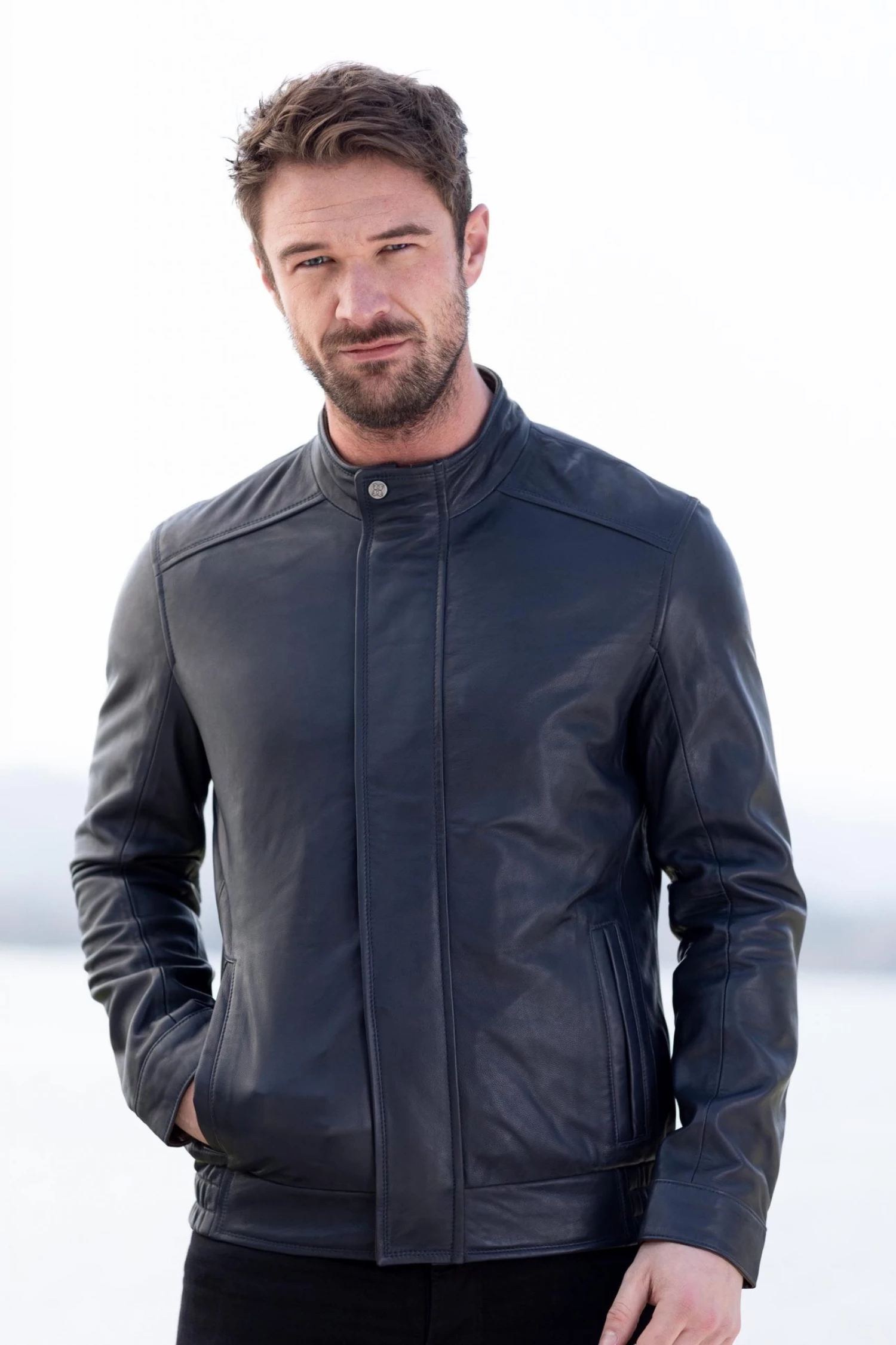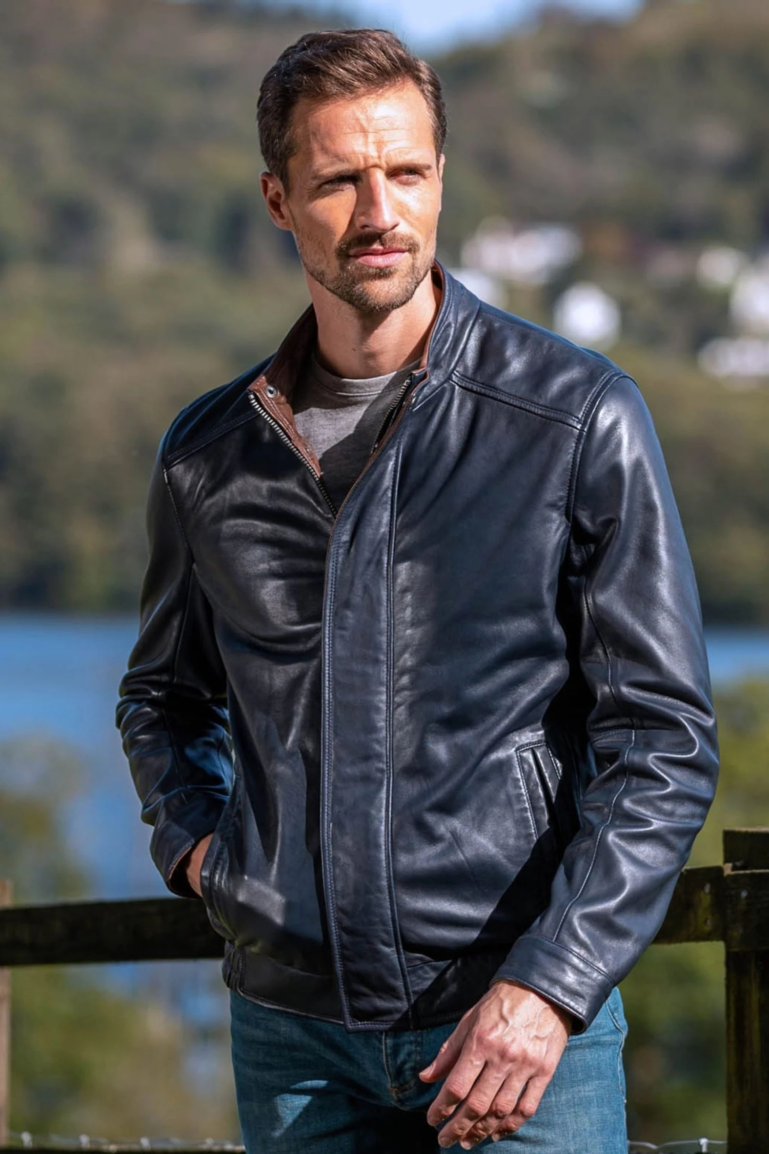 An understated, classic design the Swinside leather bomber jacket in navy will instantly elevate your new season wardrobe. Crafted using the finest, sumptuously soft leather, the jacket is adorned with a zip and popper fastening, contrasting brown leather detailing plus the authentic elasticated waistband. Simply layer over your weekend outfit for stylish off-duty style.