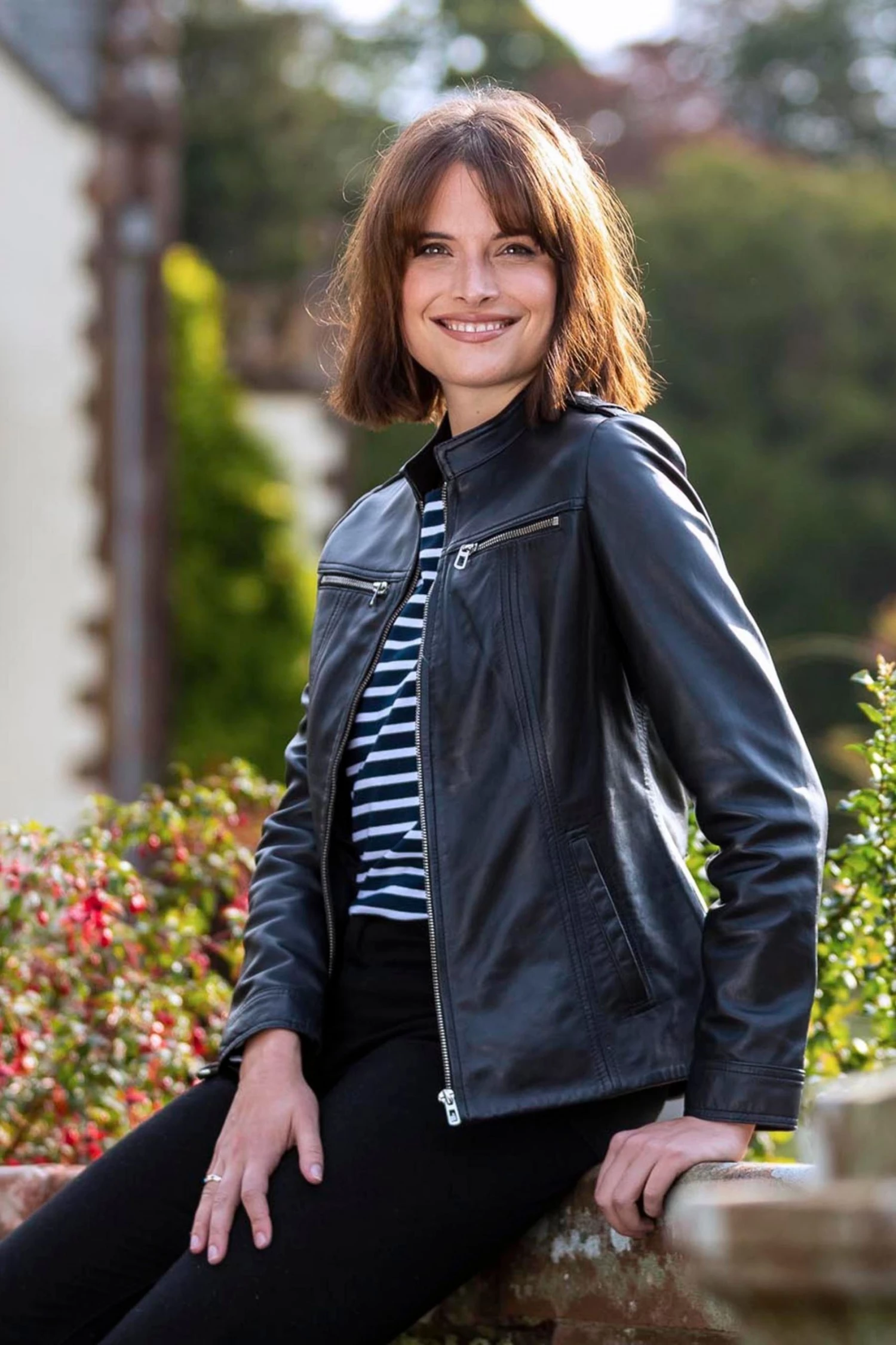 Tarn is the ultimate black leather jacket for all year round wear and all occasions. Expertly crafted from premium leather the Tarn leather jacket is soft, supple and hard wearing. With a luxe feel and casual aesthetic, it features a centre zip fastening, zip chest pockets, zip cuffs and a tab adjuster on the back for a custom fit. With brushed metal hardware this jacket is designed as your everyday go-to that is flattering for all shapes and sizes.
