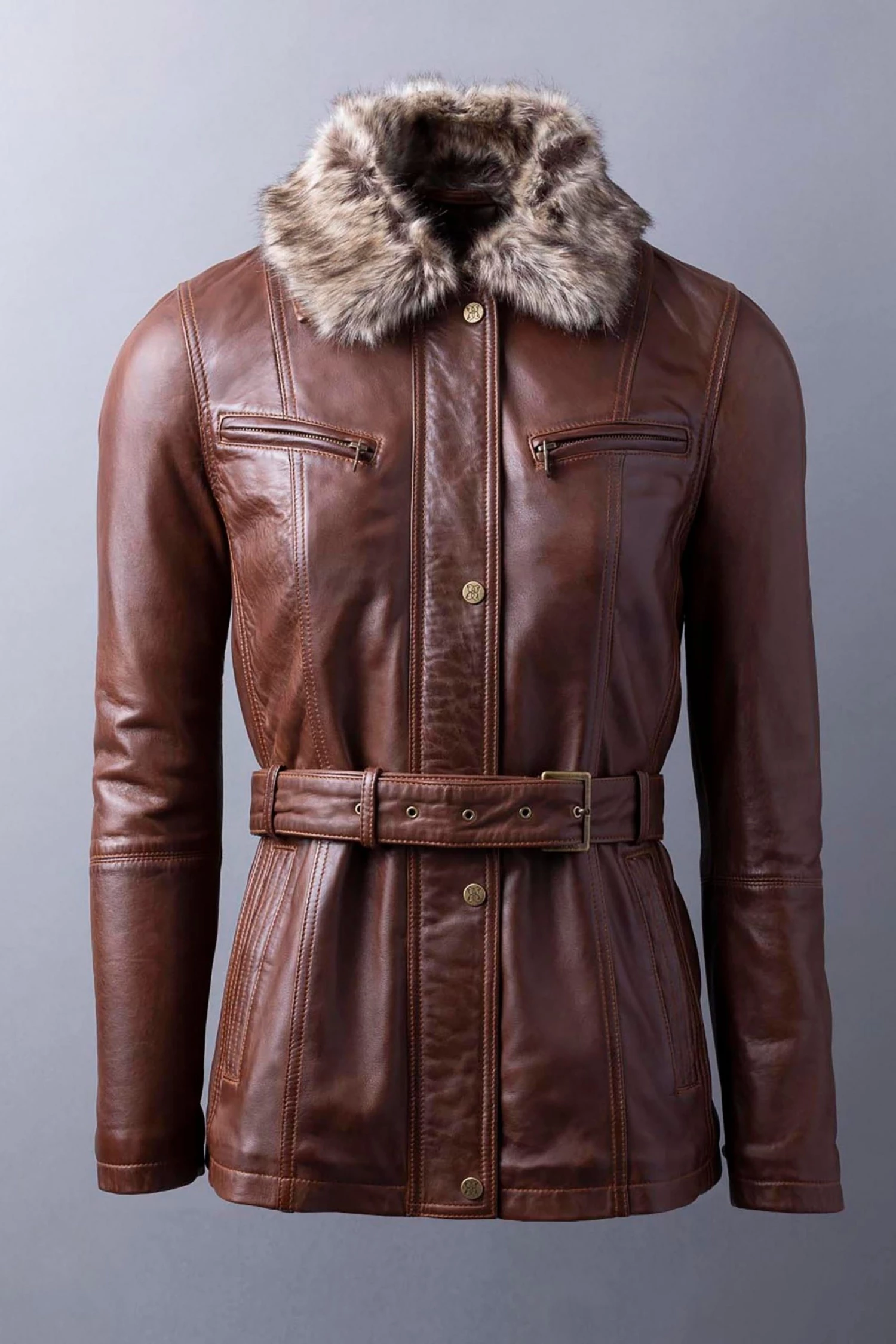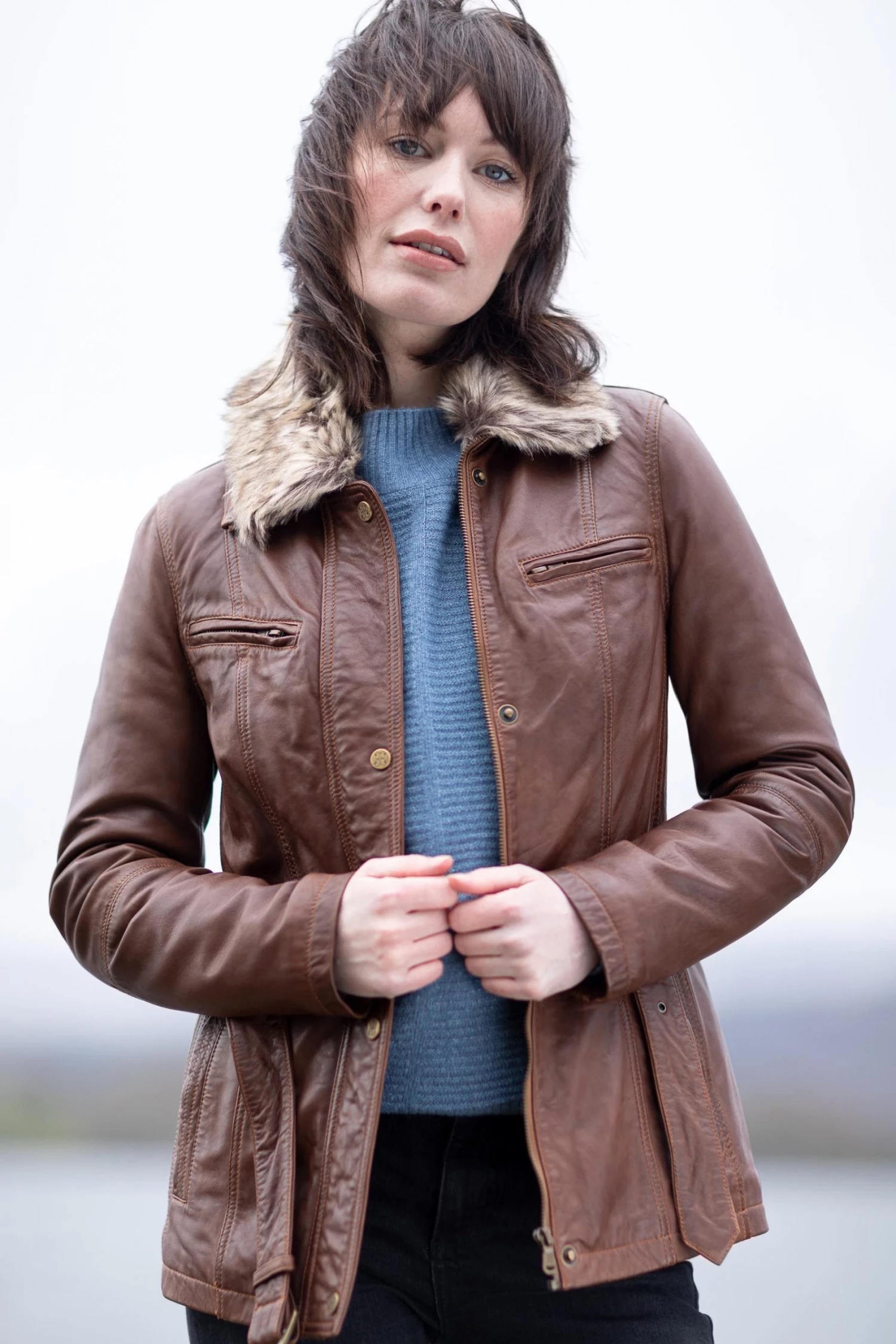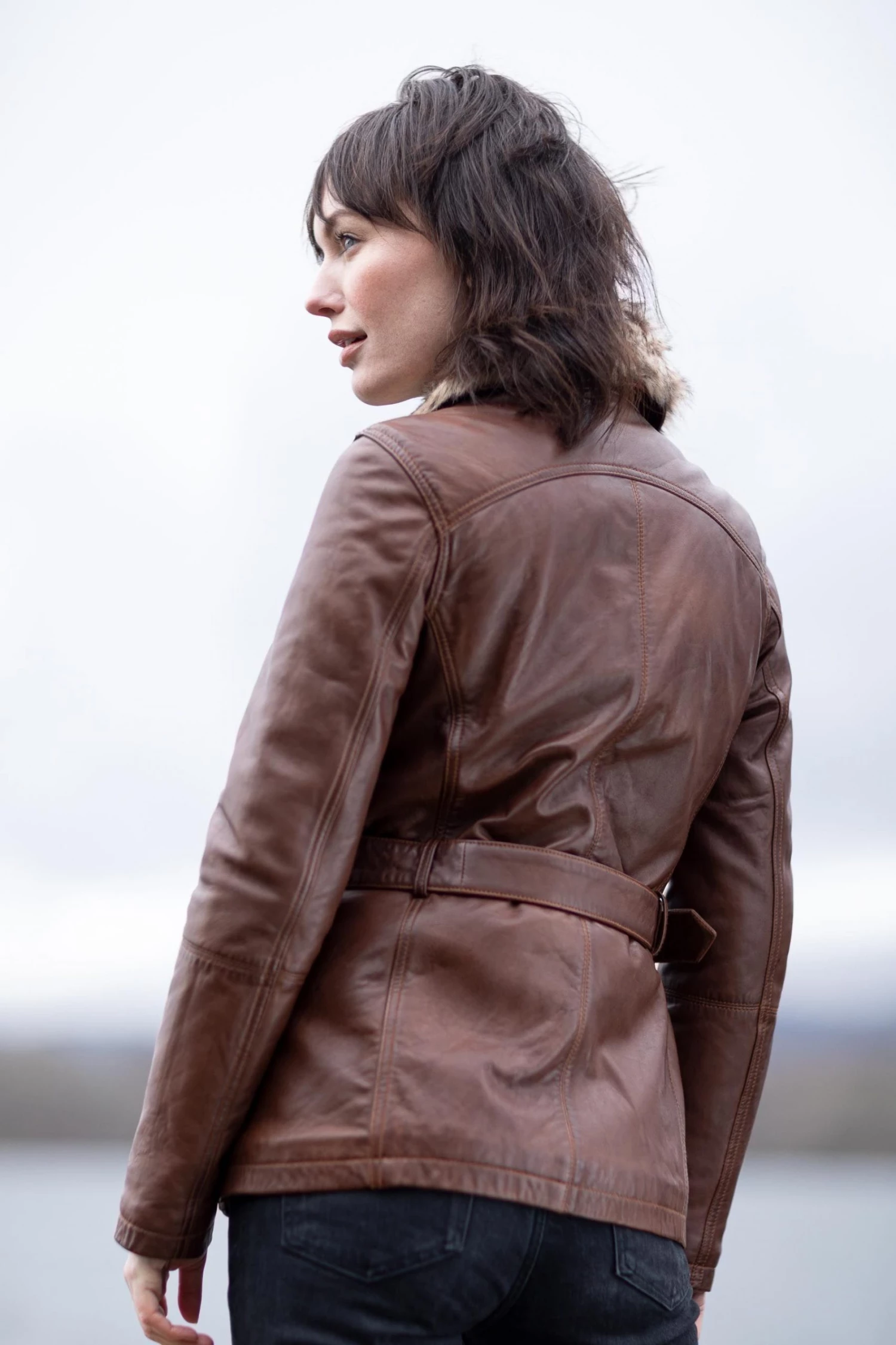 Crafted using the finest UK sourced aniline leather, the Tirril coat in tan is the perfect addition for your outerwear collection this season. The Tirril presents a sumptuously soft jacket with a luxury feel and presence. Crafted at a slightly longer length design to keep you warm this season, the Tirril features a gorgeous detachable faux fur collar, tonal hardware, a hidden zip and press stud fastening plus a belted waistline to enhance your figure. A timeless coat that has a lasting style, it will be your go-to for all occasions.