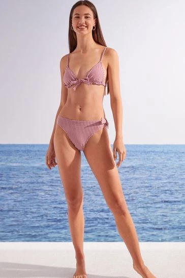 High waist bikini bottoms made in fuchsia striped textured fabric, adding an extra original edge. Plus, they come with side ties.