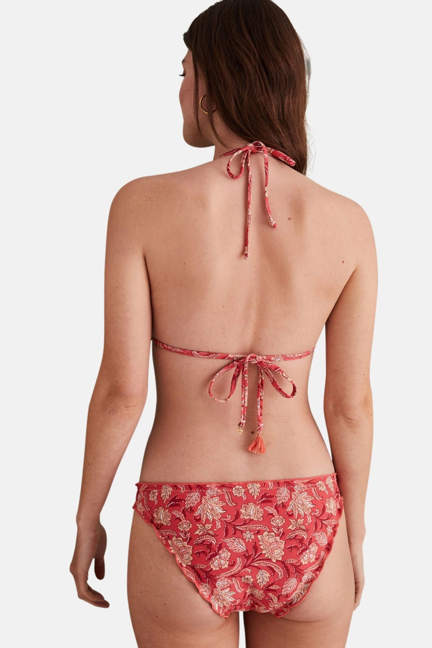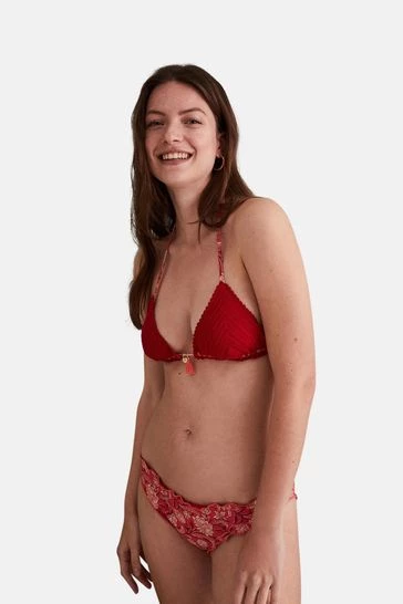 Reversible hipster bikini bottoms with a red print. They also come with gathered flounced edging, giving them an extra original look.